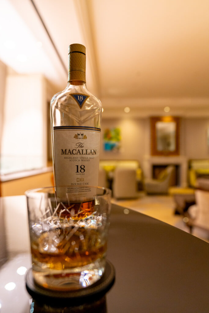 The show stopping Black Cod Miso, was a succulent piece of the freshest Black Cod, glossed with a caramelised miso lacquer and perfectly cooked. The marinade’s gentle sweetness gave way to a deep, savoury umami flavour, finishing with a clean, almost floral lift. Post dinner, we move for a night-cap at the Ory Bar, where the dark green, gold décor brings a cinematic mood. I finish off the evening with my favourite, the Macallan 18 in The Lounge.