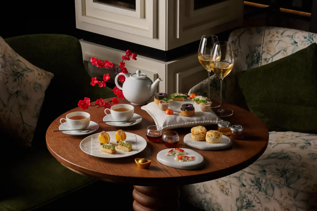 For festive periods, Canning also takes on themed afternoon tea experiences. One seasonal edition pairs sweet-and-savoury bites using ingredients associated with prosperity and good fortune, including a Yusheng-style hamachi tartlet and ‘Bakwa of the Hill’, alongside pineapple tarts and a longan-and-red-date jelly with bird’s nest, paired with cocktails designed specifically to match the occasion, including the gin-based ‘Azure Lantern’ and a pineapple-jam-infused martini, ‘Golden Saddle’.