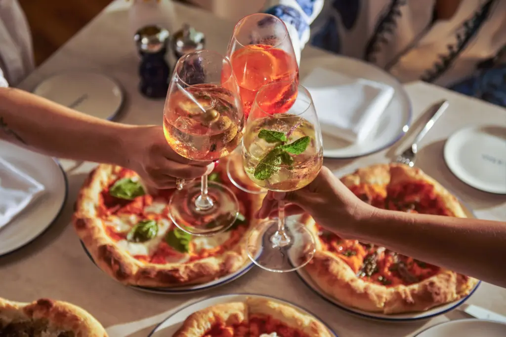 The featured Valentine-style menu begins with an aperitivo mix that includes whipped burrata bruschetta, Irish oyster and kingfish tartare, before moving into a signature handmade 32-egg-yolk campanelle with Boston lobster. Mains include salt-baked sea bass and maple-leaf smoked duck breast and finishing with a white chocolate fondente layered with raspberry, rose and pistachio. Live piano music is positioned as part of the experience. For a more casual mid-week ritual, L’Amo also leans into aperitivo culture on its terrace with free-flow artisanal pinsa matched to spritzes and sparkling pours, a neat fit for after-work drinks or a lighter alternative to a full dinner.